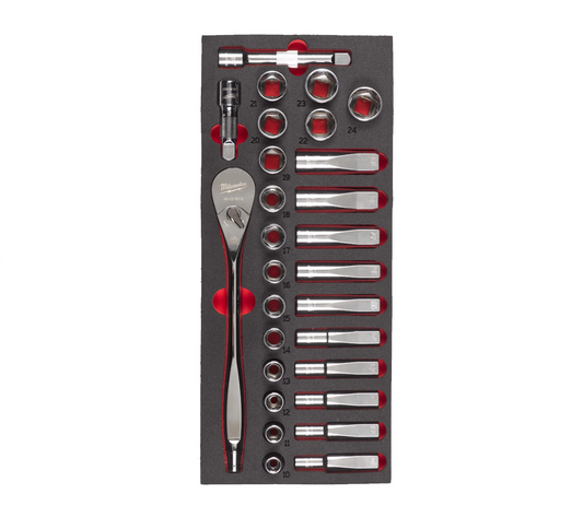 Espuma con Carraca y Vasos de 1/2" 28pcs Milwaukee