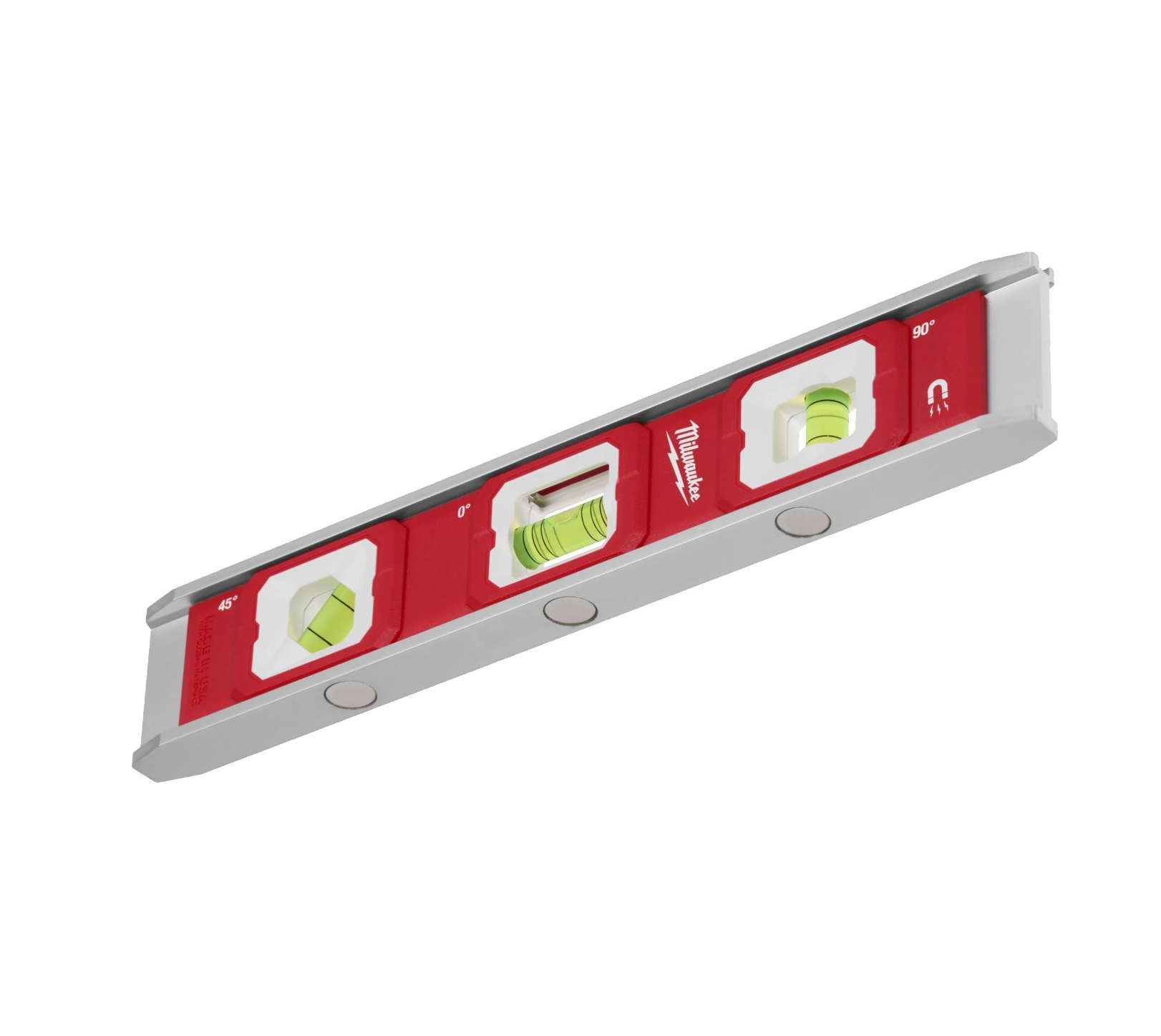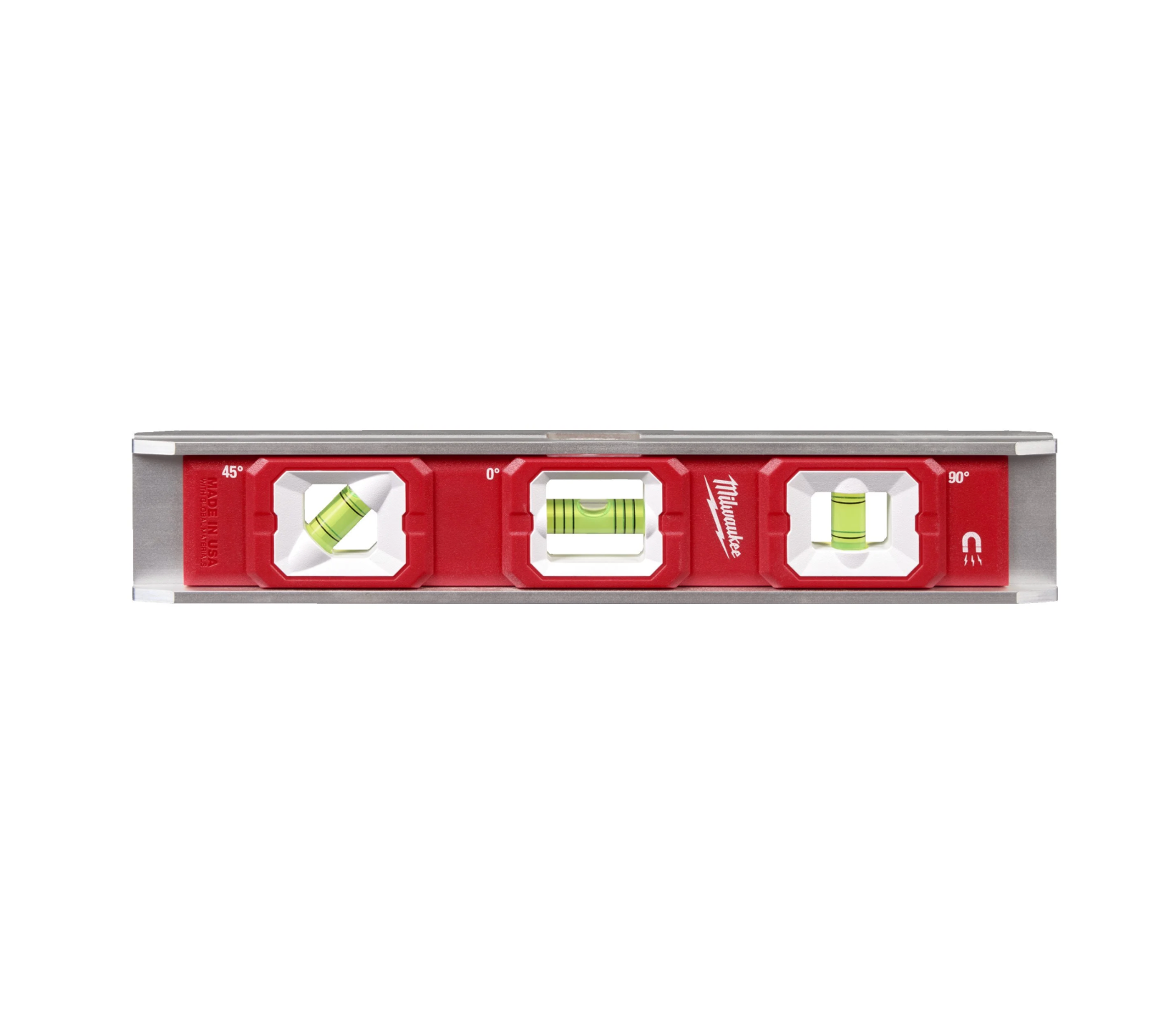 - Nivel torpedo con 3 viales Milwaukee ref.4932498716 – Nivel compacto con tres viales para nivel, plomada y ángulos de trabajo.