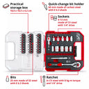 - High-quality materials: The bits and sockets are made of S2 and CV steel, ensuring durability and wear resistance.