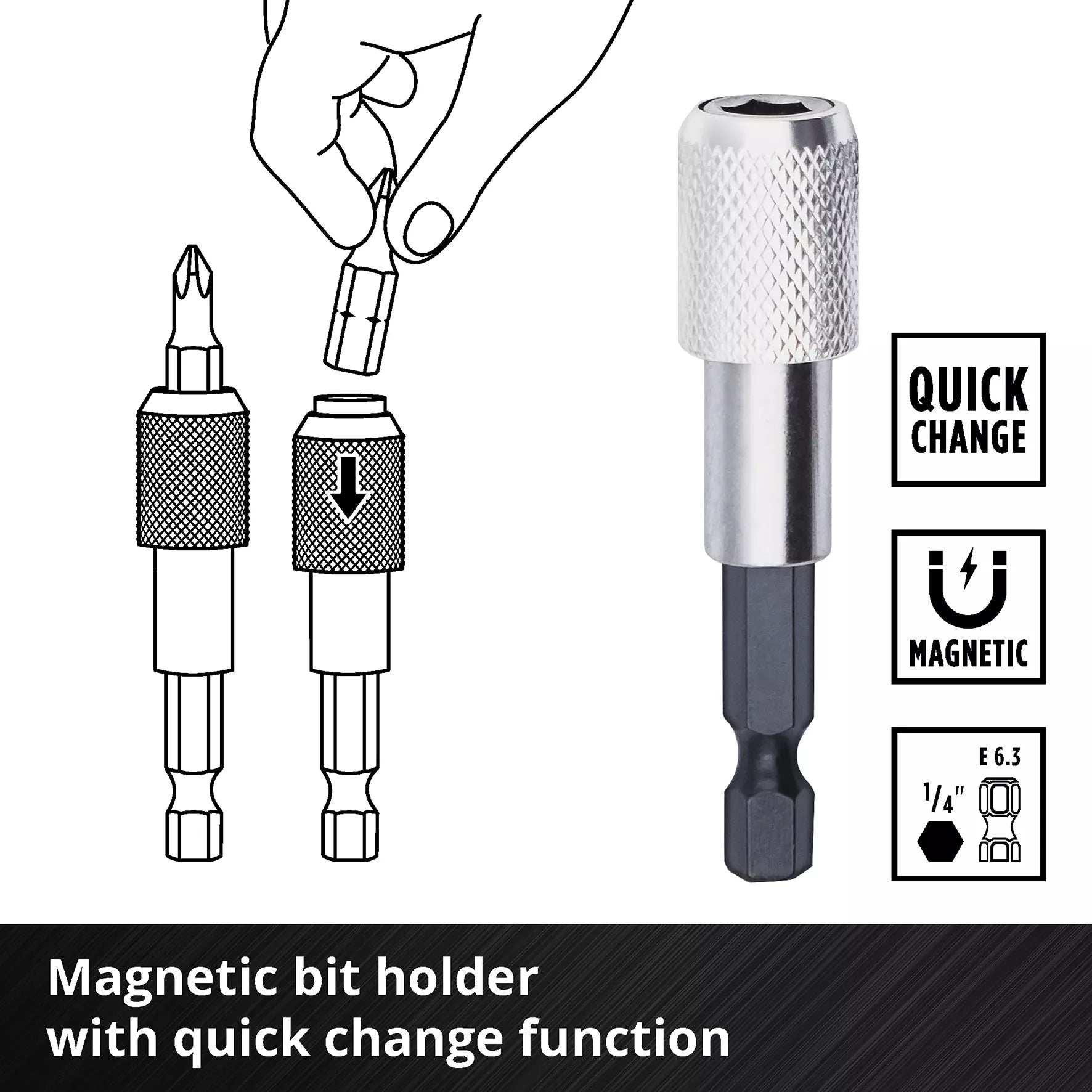 - 1 quick-change bit holder (60 mm) with metal sleeve and powerful magnet.