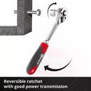 - 1 reversible ratchet with 1/4” drive, hardened head and 72 teeth.