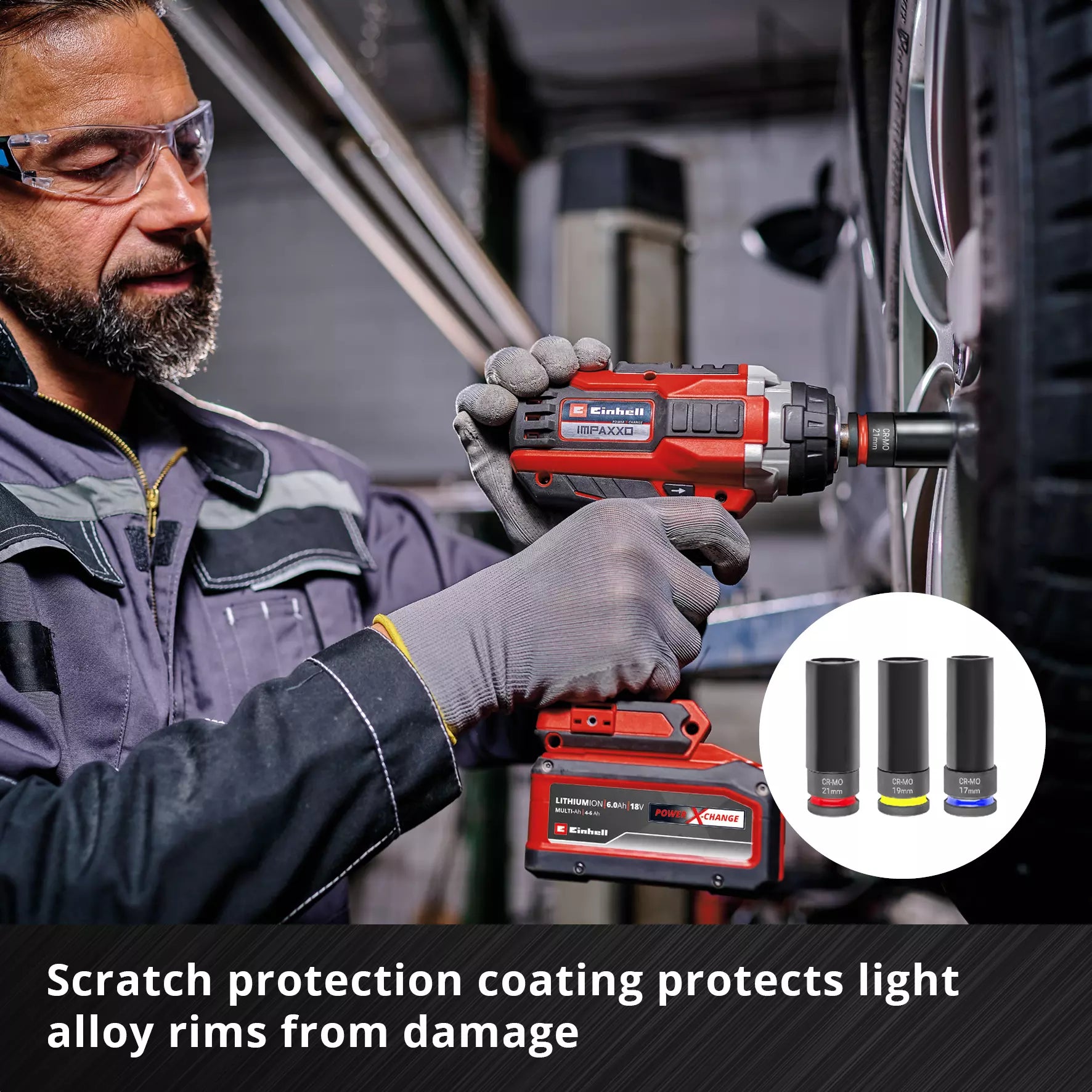 • Easy identification : Each socket is marked with the Einhell logo and its size for quick identification.