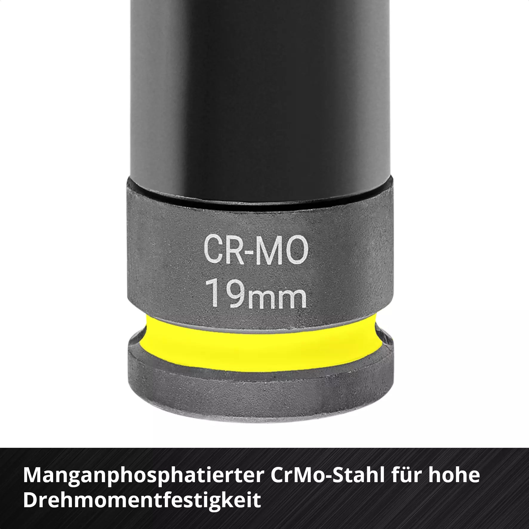 The Einhell 3-piece impact wrench set (model 49109263) is a set designed for efficient wheel mounting and dismounting on vehicles, especially painted or polished alloy wheels.