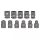 • 11 hexagonal impact sockets , 40 mm long, made of chrome-molybdenum (CrMo) steel, phosphated with manganese, providing superior resistance to wear and high torque. Socket sizes are: