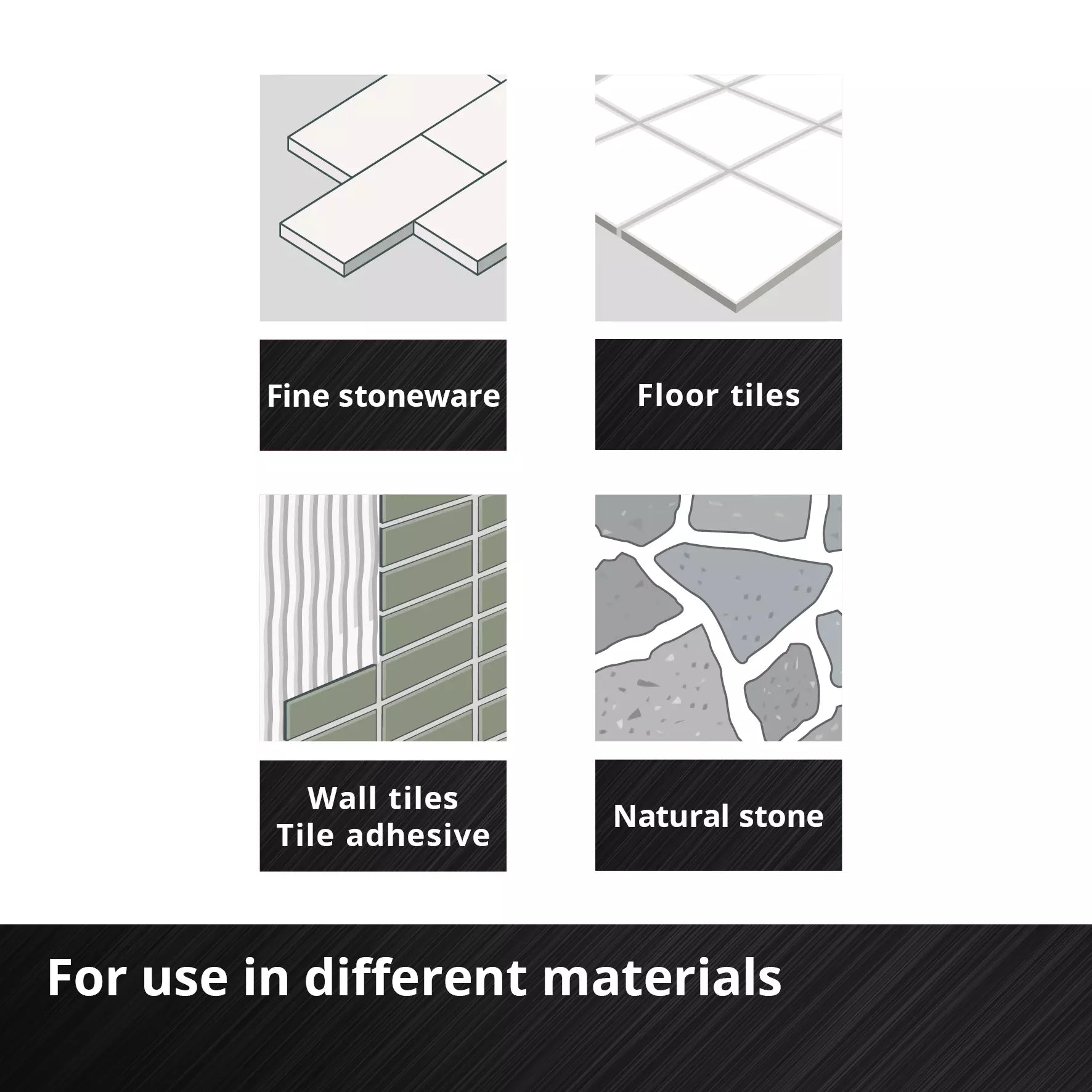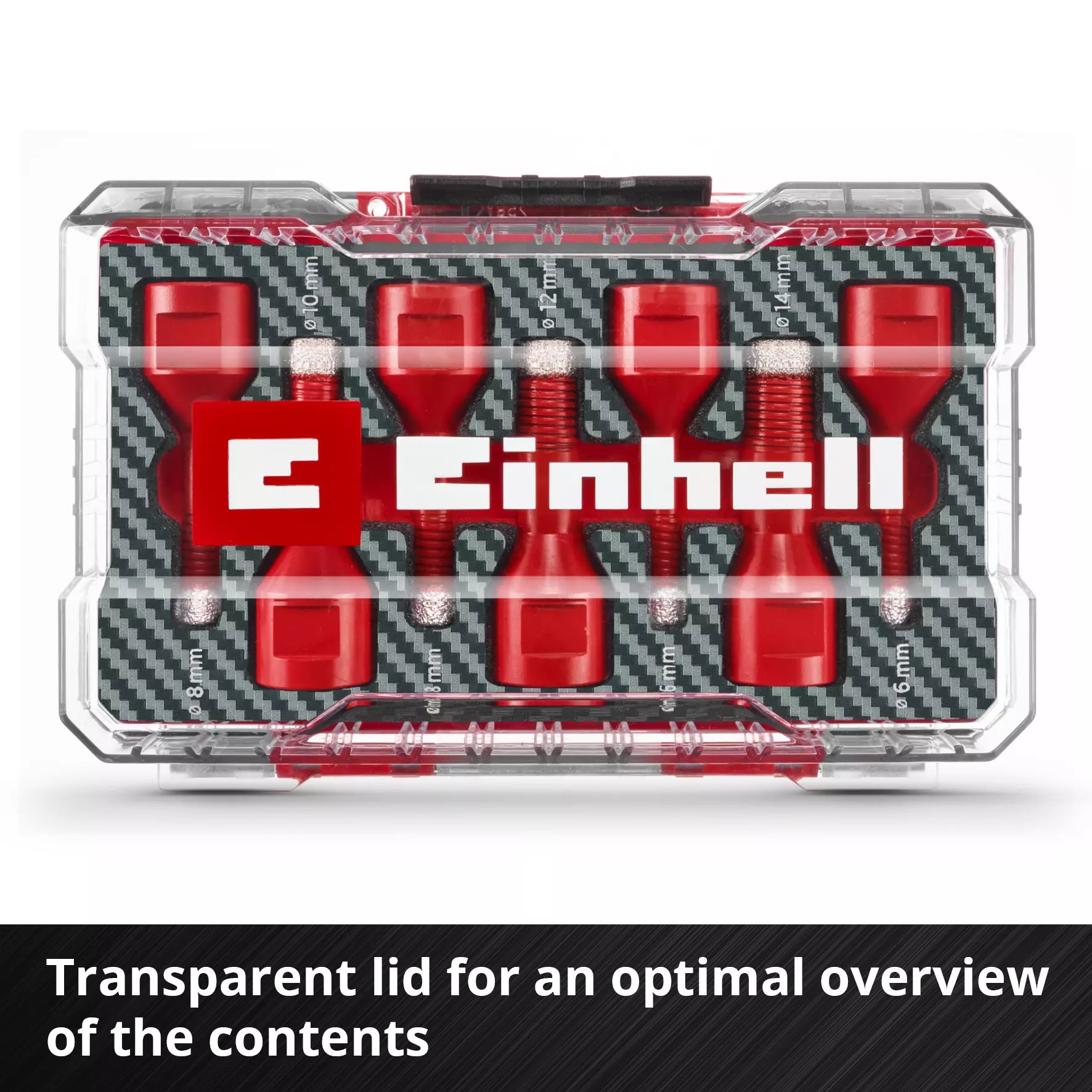 The Einhell M-CASE LS 7-piece drill bit set is designed for drilling materials such as porcelain, tiles, and natural stone. These diamond drill bits offer a long service life and allow dry cutting without the need for additional cooling.